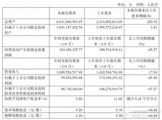 报告称,截止本报告期末,曲美家居总资产约69.3亿元,比上年度末增加229.52%。2018年1月至9月,曲美家居营业收入约16.9亿元,比上年同期增加17.94%;归属于上市公司股东的净利润约0.95亿元,比上年同期减少45.4%。