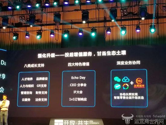 另一方面,在通过腾讯旗下各平台,包括腾讯游戏、微信、QQ和移动支付等四大平台,视频、音乐和文学等其他业务平台构建的涵盖亿万人的开放生态下,腾讯要强化升级,投后增值服务,甘当生态土壤。主要体现在八类成长支持、四大特色增值和深度业务协同三个方面。其中四大特色增值是Echo day、CEO分享会、IF大会和1v1定制响应。