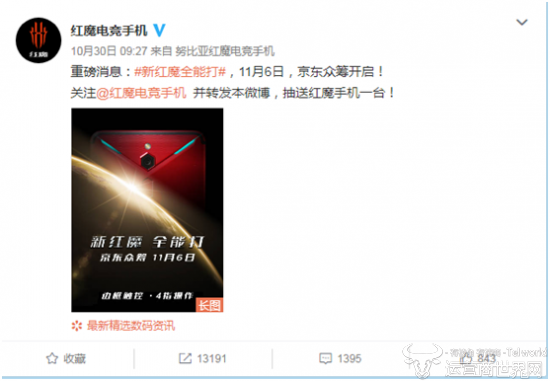 从红魔电竞手机官博的发文来看,这款性能强悍的新红魔手机将采用众筹形式。众筹时间和渠道,则敲定为11月6日,在京东正式开启众筹活动。