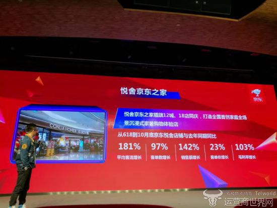 胡胜利以悦舍京东之家为例,称目前已经插旗12城、18店同庆,打造全国首创家庭全场景沉浸式家装购物体验馆。据胡胜利介绍,从今年618到10月底,京东悦舍店铺与去年同期相比平均客流增长181%,客单数增长97%,销售额增长142%,客单价增长23%,毛利率增长103%。