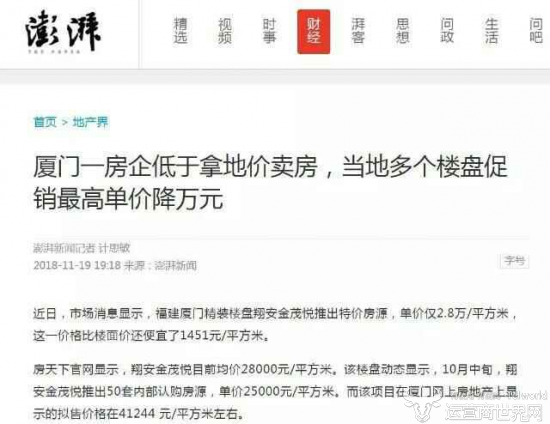 厦门更惨,近日,厦门某精装楼盘推出特价房源,单价仅2.8万元一平米,而该项目在厦门网上房地产上显示的拟售价格在41244 元一平米。