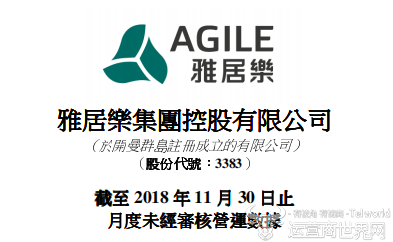近日,雅居乐集团控股有限公司(以下简称为“雅乐居”)董事会公布,截至2018年11月30日止月份,雅乐居及其附属公司连同合营公司及联营公司的预售金额与以雅居乐品牌销售的雅乐居及其附属公司房地产建设管理项目的预售金额合计为人民币107.8亿元,其预售建筑面积为85.7万平方米;平均预售价为每平方米人民币12576元。