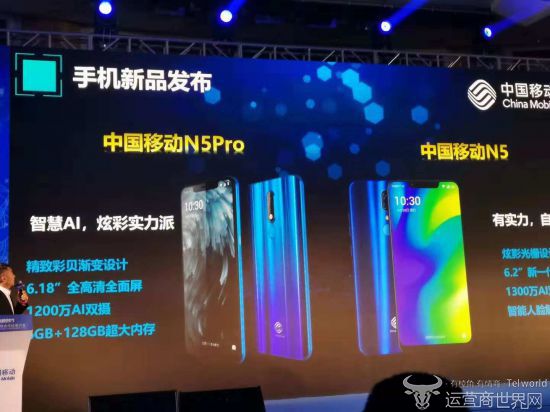 在手机新品方面,中国移动将发布包括中国移动N5 Pro 和中国移动N5两款新手机,其中N5采用6.19寸全新一代刘海屏,配备3400mAh大电池,搭载后置1300万+200万像素的双摄像头,后置1300万AI双摄像头,支持自动场景识别、超级夜景、背景虚化等基础的AI双摄功能。中国移动N5pro手机采用精致彩贝渐变设计,搭载1.8GHz八核高速处理器,拥有1200万AI双摄,是中国移动自有品牌在AI技术方向上的突破性产品。