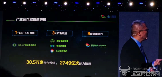 在会议现场,简勤回顾了一年时间里139计划取得的成果。他介绍说,1个NB-IoT网络目前已经全面商用;3大产业联盟(数字家庭联盟、物联网联盟、5G联创中心)也取得了非常不错的成绩,目前已经有30.5万家合作伙伴;还成立中国移动能力开放商店发展9项通用能力,如今超2749亿次能力调用。