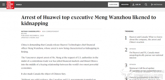 12月6日早晨,加拿大《环球邮报》曝出华为创始人任正非之女、华为CFO孟晚舟在加拿大被捕。原因是,华为涉嫌违反了美国对伊朗的贸易制裁规定。