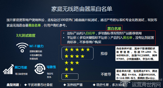 有意思的是,为提升家庭宽带用户使用体验,中国移动智能硬件测试中心选取超过100款热门路由器开展测试,通过严苛的标准和专业化的测试,发布了家庭无线路由器黑白名单,来供用户购机参考。
