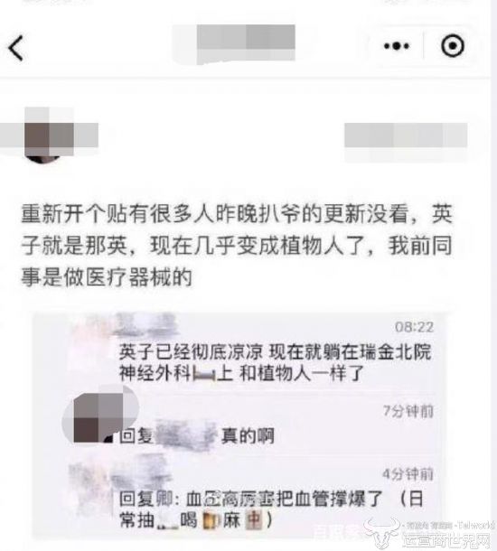 近日,有网友在某知名网站的发表了这样一个帖子。说那英生活严重不规律导致血压过高、血管爆裂而住院,现在已经失去意识成植物人,消息一出顿时让粉丝们提心吊胆。