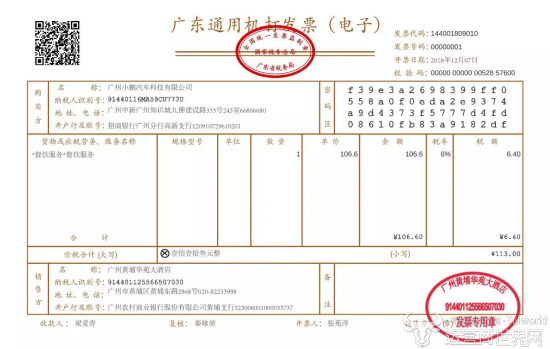 12月7日,全国首张“一条龙”区块链电子发票在广州黄埔华苑大酒店开出。