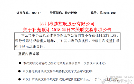 公告显示,浪莎补充预计2018年日常关联交易金额为1310万,全年累计预计日常关联总额为不超过3610万元,已超过董事会审议范围。