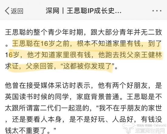 今天,有媒体发布了一篇有关王思聪的文章,堪称是他本人的“成长史”,里面有很多王思聪的自述。
