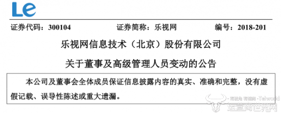 12月13日,乐视网信息技术(北京)股份有限公司(以下简称“乐视网”)发布关于董事及高级管理人员变动的公告。根据公告,总经理刘淑青、副总经理袁斌、董事李宇浩三位高管同时辞职。这或许预示着连遭劫数的乐视网真的已经不行了。