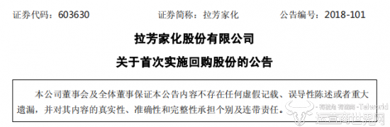 据了解,2018年12月12日,拉芳家化以集中竞价交易方式首次实施了回购。
