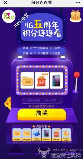 据了解,此次年末积分抽奖活动是上海移动为答谢用户支持推出的一项回馈活动,也是4G五周年系列活动的预热。