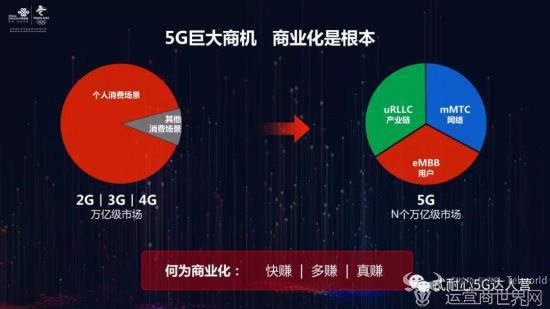“大家参加各种会议,看到各种材料,讲5G技术先进性和5G商机的比较多,但是讲“5G商业化”较少,何为“商业化”?其实就是“快赚、多赚和真赚”,如果没有商业化,一切都是不可持续的,用句网络语言,就是“一切不赚钱的商业模式,都是耍流氓”。”