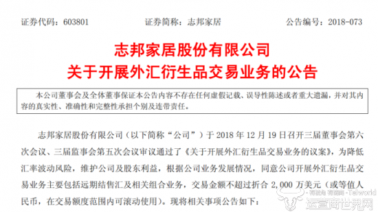 12月19日,志邦家居发布了关于开展外汇衍生品交易业务的公告。在国际形势不稳,汇率不稳定情况下,志邦家居为何又要开展外汇业务呢?