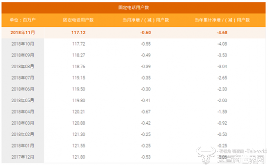 在固定电话业务方面, 11月份中国电信本地固话用户减少60万户,累计达1.1712亿户。