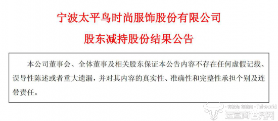 日前,宁波太平鸟时尚服饰股份有限公司(简称“太平鸟服饰”)发布了关于股东减持股份的公告。
