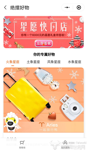 12月21日消息,苏宁易购与微信合作正式上线主打趣味购物的小程序“星愿快闪店”。据悉,这次的小程序率先推出“火象星座”“土象星座”“风象星座”“水象星座”四大主题,每个主题对应相应的星座,为每个星座甄选6-8款专属好物。