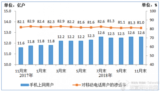图5 2017年11月末-2018年11月末手机上网用户情况