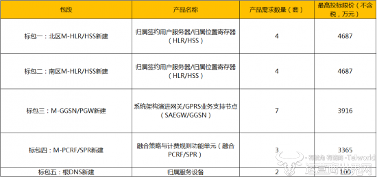 标包二:南区M-HLR/HSS新建,中标数量1个;