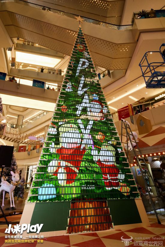 挑战现场,雷军完成了最后一块拼图,一棵超大梦幻圣诞树成功展现在现场观众眼前,营造出了浓浓的节日气氛。有趣的是,这棵“圣诞树”不仅刷新了纪录,还同时给商场顾客提供了高速无线上网服务,成为平安夜当天北京“最大热点”。