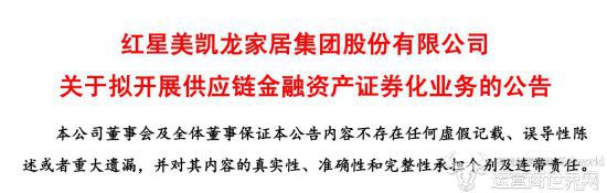 日前,红星美凯龙家居集团股份有限公司(简称“红星美凯龙”)发布了关于拟开展供应链金融资产证券化业务的公告。