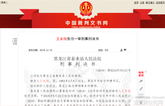 判决书显示,2010-2011年间,王永利利用担任齐齐哈尔电信办公室综合秘书管理房产证照及公章的职务便利,将公司四处机房转让给他人以偿还个人债务,贪污犯罪金额近110.26万元。
