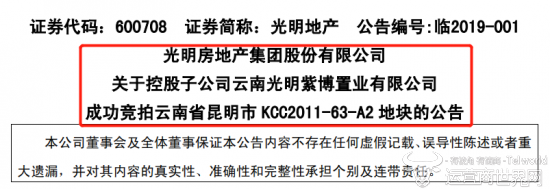 近日,光明房地产集团股份有限公司(以下简称为“光明地产”)公布了关于其控股子公司云南光明紫博置业有限公司成功竞拍云南省昆明市 KCC2011-63-A2 地块的公告。