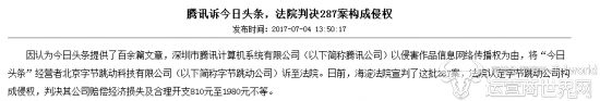 除此之外,今日头条在2018年3月侵权优酷《战狼2》,被要求赔偿100万元;更早之前还被腾讯起诉百余篇文章侵权,最终经法院判决287案构成侵权。有意思的是,2018年9月,今日头条还起诉百度好看视频侵犯今日头条《一郭汇》著作权。这似乎有点“只许州官放火,不许百姓点灯”的意思。
