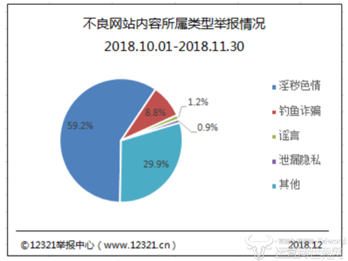近日,12321 举报中心发布2018年10 月至11月不良网站举报及处理公告。