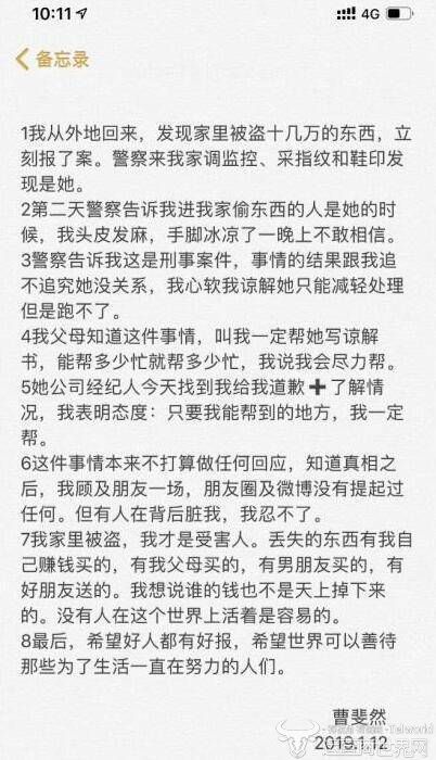 昨天,演员曹斐然爆料自己的家中惨遭入室盗窃,金额高达十几万。演员的家被偷了已经是个大新闻,万万没想到曹斐然报警后揪出的作案之人竟是自己的朋友,并且也是一名演员。