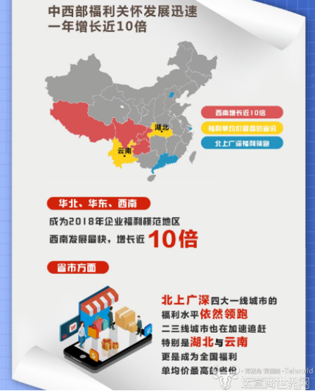 区域方面,北上广深四大一线城市的福利水平依然领跑,二三线城市也在加速追赶。特别是湖北与云南,更是成为全国福利单均价最高的省份。