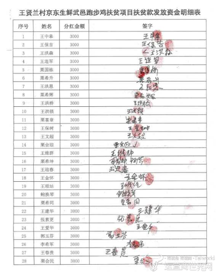 王贤兰村跑步鸡扶贫款发放明细表