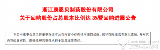 近日,浙江康恩贝制药股份有限公司发布了关于回购股份占总股本比例达3%暨回购进展公告。