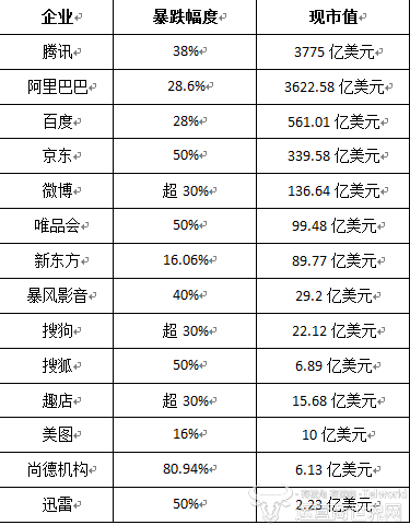 2018年股市的挫折没有绕过任何一家上市企业,无论是腾讯、阿里、百度等老将,还是趣店、美图、新东方等股市新秀均不同程度受损。据不完全统计,共有14家企业市值跌损严重,其中微博、搜狗、趣店市值跌了超过30%,