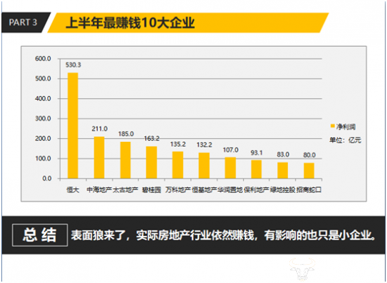 2018上半年房地产行业表面“狼来了”,实际房地产行业依然赚钱,有影响的也只是小企业。就像恒大集团总裁夏海钧曾说的那样,房地产未来一定是大鱼吃小鱼。