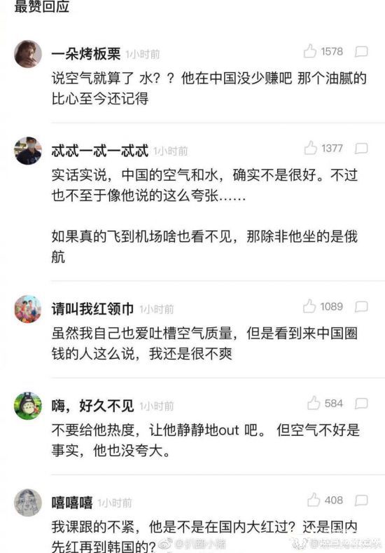 网友们当然是很生气,毕竟黄致列在中国赚了很多钱,而且他这个言论有夸大的成分。作为艺人,黄致列喝的一定是矿泉水,不仅如此,他还参加的湖南卫视节目,去的都是山清水秀的小山村。虽然黄致列道歉的速度倒是挺快的,但网友们并不认账,就连韩国知名博主都公开吐槽他这个举动过于“白眼狼”!