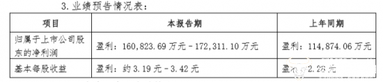 公告显示,在本报告期内,古井贡酒预计实现归属于上市公司股东的净利润为16.08亿元–17.23亿元 ,同比增长40.00%至50.00%,基本每股收益约 3.19 元–3.42 元。