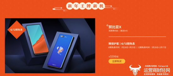 从活动页面可以看到,“护眼双屏”努比亚X全版本均享受6/12期免息福利,售价3299元起,其中1.28-1.31日为6期免息时间、1.28-2.17日为12期免息时间。与此同时,用户购买努比亚X还可免费获赠一个专属保护套。