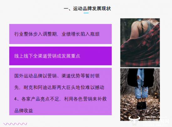 报告显示,2018年运动服饰行业整体步入调整期,业绩增长陷入瓶颈,众多品牌未能推出令人惊艳的产品。这时营销方面必然成为兵家必争之地,线上线下全渠道营销成发展重点,以此来补充企业收益。