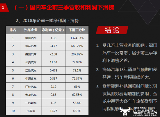 近日,运营商财经网发布“2018年汽车领域数据分析报告”,在国内车企前三季的净利润下滑榜中,福田汽车格外瞩目,毕竟巨幅的净利润下滑趋势很难不引起各界的特别关注。