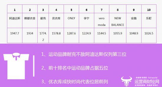 值得一提的是,在以上品牌中运动品牌占据了半数,可见休闲运动风格的服饰拥有十分大的市场,其中德国品牌阿迪达斯是最受关注的品牌。