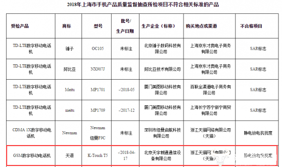 据了解,在这5批次不合格的老年人手机中,天语(天语K-Touch T5)就因静电放电抗扰度问题而榜上有名。