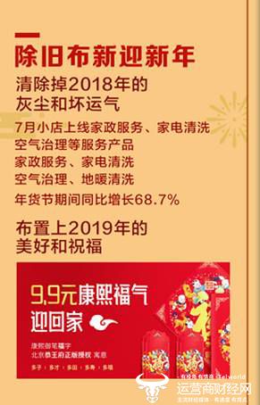 如果大家以为小店只会卖吃的喝的,那是对它最大的误会。苏宁小店在2018年7月就上线了家政服务,还有家电清洗、空气治理、地暖清洗等服务,而在今年的年货节期间,业务实现了68.7%的高速增长,为万千家庭送去了清爽与干净。而春节期间,小店还推出了9.9元康熙福气迎回家的活动,让大家过个祥和福气的年。