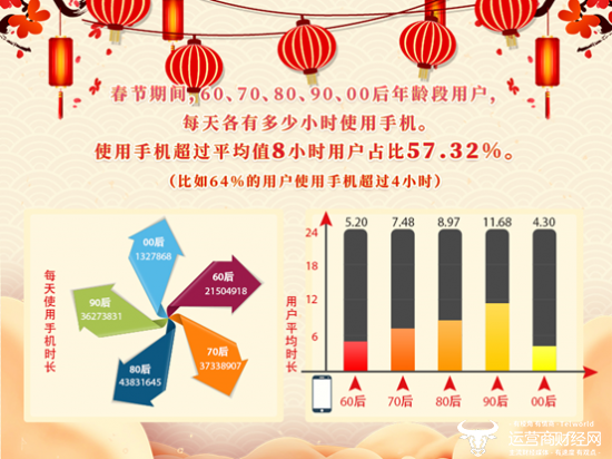 猪年春节期间大家使用了多少流量?使用了多长时间手机?人们使用手机都做了些什么?2月11日,中国移动湖北公司发布的《2019年春节大数据报告》对以上问题进行了解读。