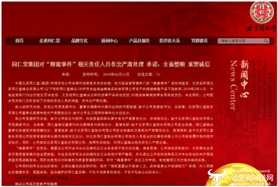 运营商财经网讯 近日,北京同仁堂发布了就过期蜂蜜事件发布处理通报声明。