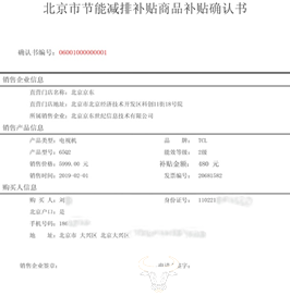 在京东下单TCL电视的刘先生成为北京市商务局新一轮家电节能补贴的首单用户