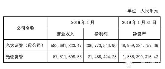 数据显示,光大证券1月份营收5.8亿元,净利润20.6亿元,净资产489.59亿元;光证资管营收5761万元,净利润2146万元,净资产15.56亿元。