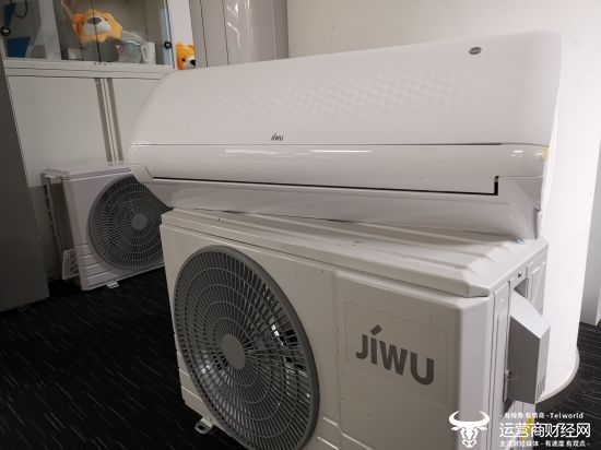 从照片可以看出,这款空调外观为纯白色,上面印有“JIWU”和“Biu”的标识,疑似苏宁推出的首款智能空调。