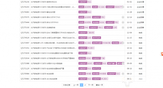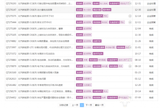 而对于投诉的问题,又数车身及电气相关的问题最多,有33条投诉记录,其次是发动机相关的18条投诉记录,第三是11条投诉记录的制动系统。作为纯电动车,电池是车辆的根本,而电气却成为投诉最高的问题,实在是值得企业反思。